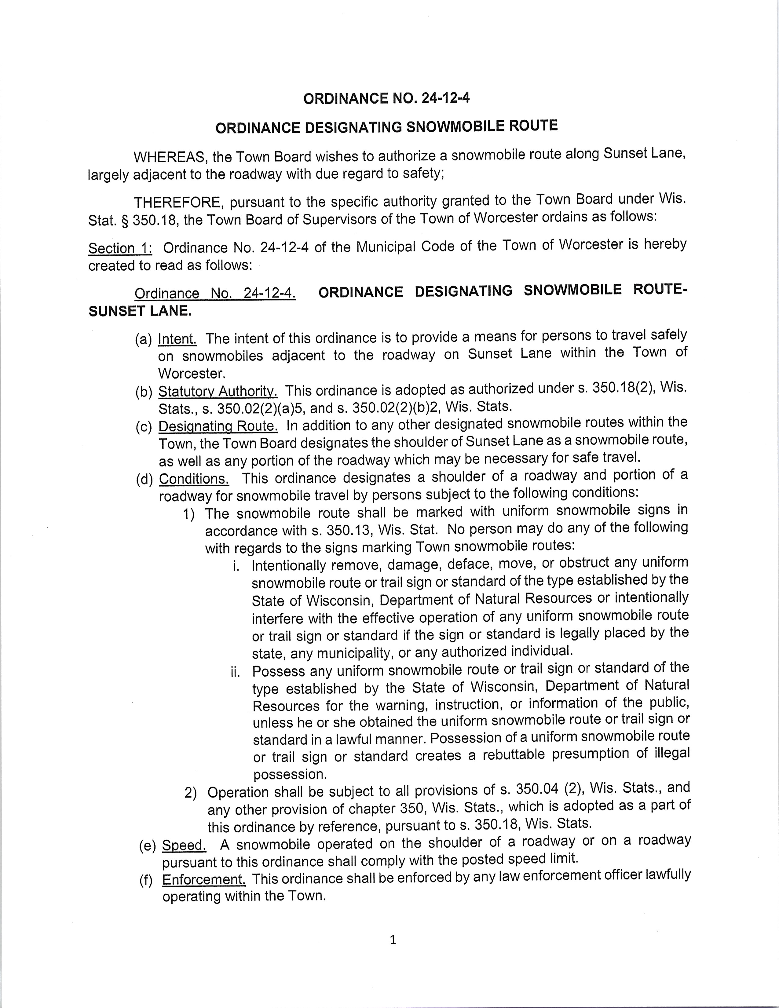 Listed below are the Town of Worcester ordinances.  To view each one, click on the link.